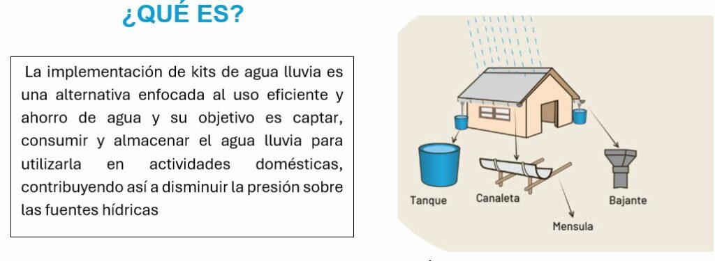 Estos kits incluyen sistemas de recolección para utilizar el agua en actividades domésticas, reduciendo así la dependencia de fuentes convencionales y promoviendo el uso responsable de los recursos hídricos.