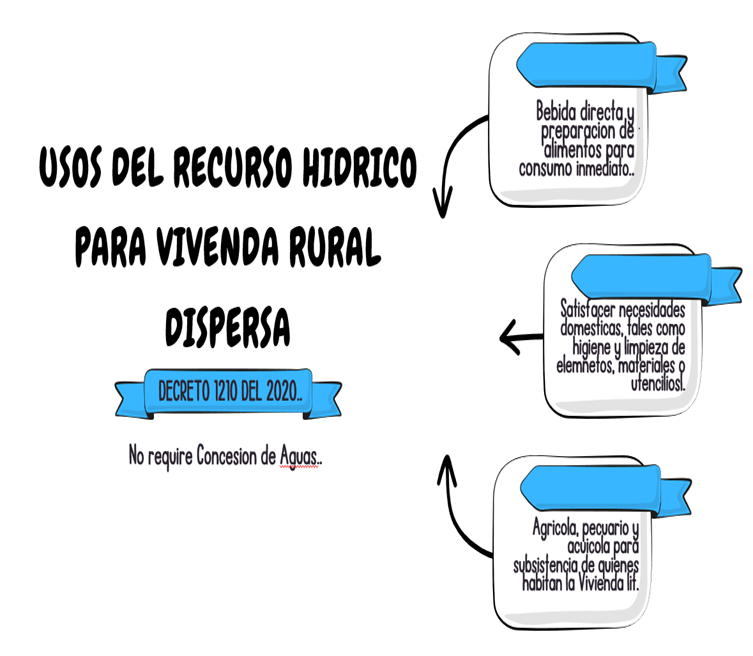 | Decreto No. 1210 del 2020 | «Por el cual se modifica y adiciona parcialmente el Decreto 1076 de 2015, Decreto Único Reglamentario de Sector Ambiente y Desarrollo Sostenible en relación con el Registro de Usuarios del Recurso Hídrico, se reglamenta parcialmente el artículo 279 de la Ley 1955 de 2019 y se dictan otras disposiciones» ARTICULO 2.2.3.4.1.1. Parágrafo: El uso del agua para consumo humano y doméstico en viviendas rurales dispersas deberá hacerse con criterios de ahorro y uso eficiente del recurso hídrico, teniendo en cuenta los módulos de consumo establecidos por la autoridad ambiental competente Enlace: https://www.funcionpublica.gov.co/eva/gestornormativo/norma_pdf.php?i=141359 |